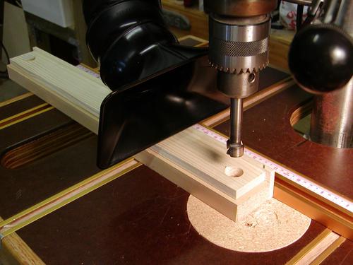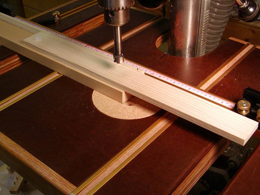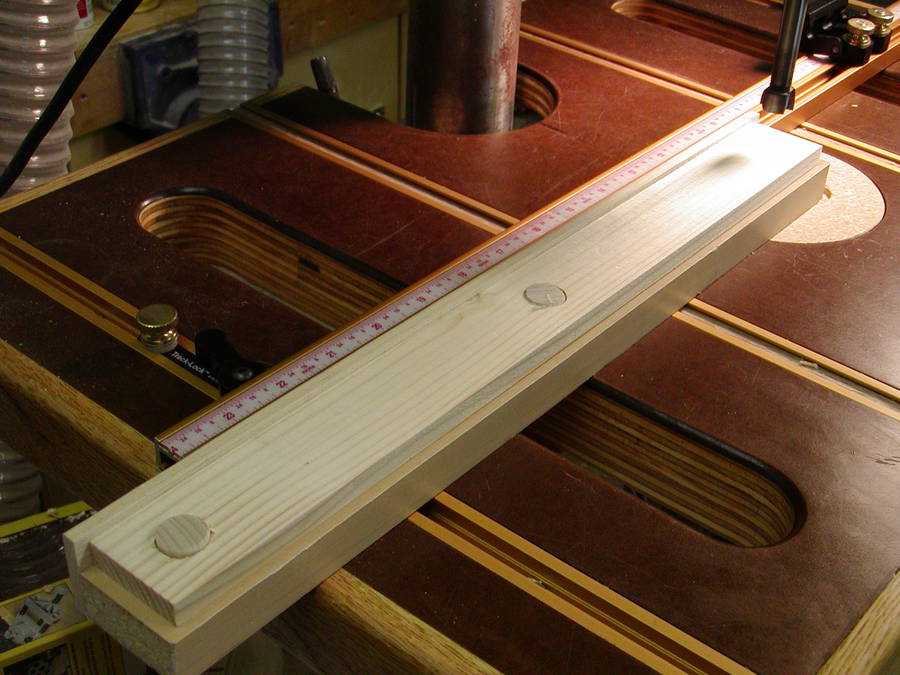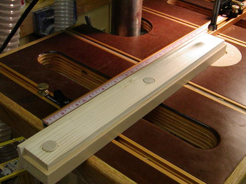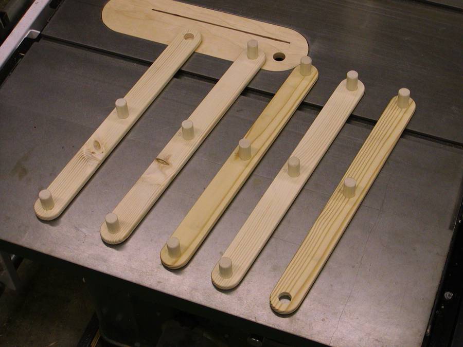 x 1-1/2" wide x 3/8" thick cut from a piece of 2x4. I used 5/8" dowel.