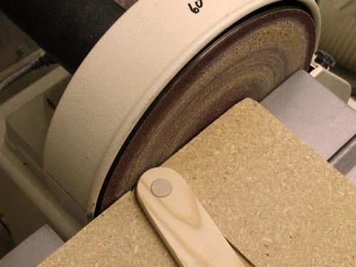 Round the ends on the disc sander with a circle-sanding jig, then round over the edges.