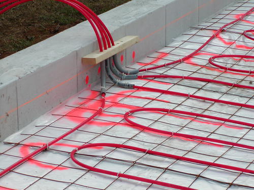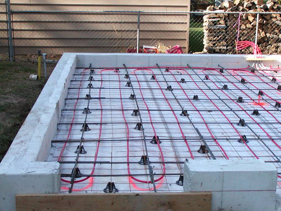 I decided to use radiant heat, which is quiet, efficient and economic. The radiant heat pipes need to be centered in the concrete slab.