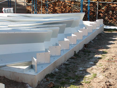 set into the concrete. The Base Plates are caulked to the stem wall. The