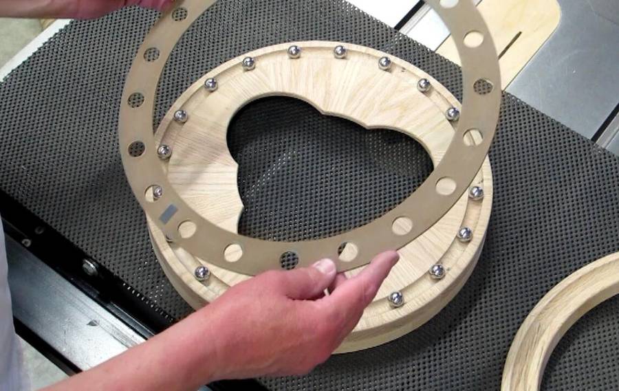 the center in this large wood workpiece. The following video explains a