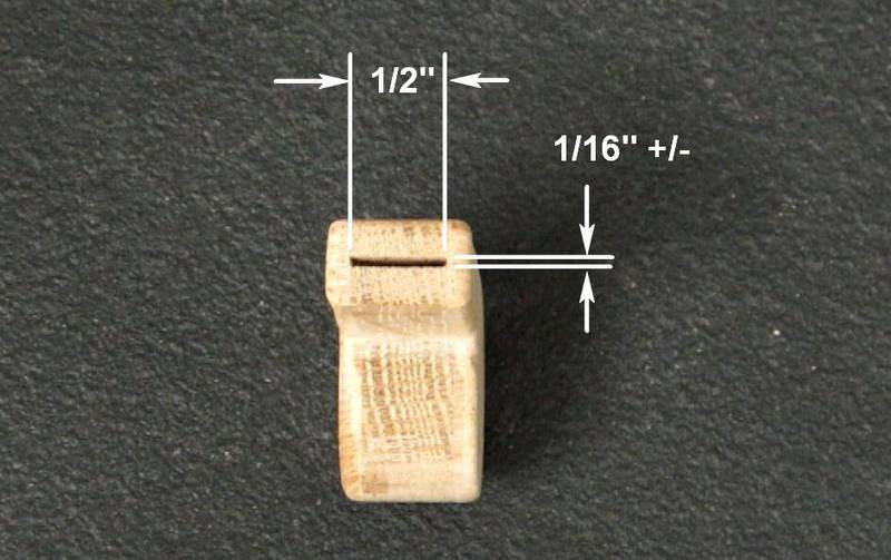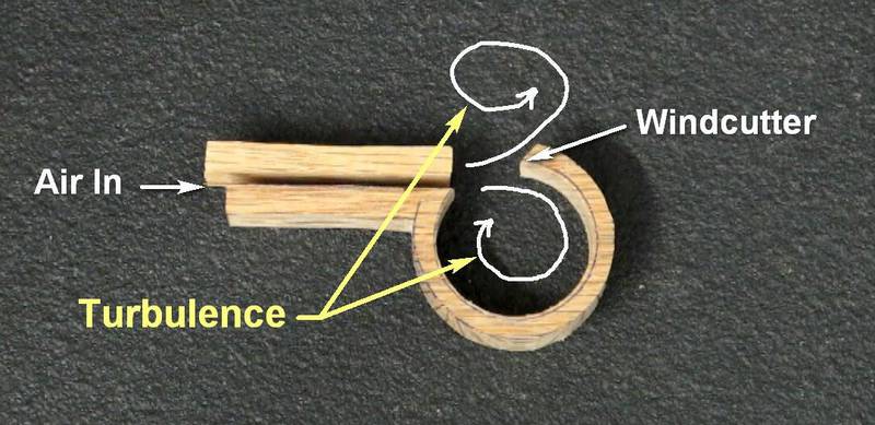the whistle is split lengthwise with a saw and the wind cutter at the