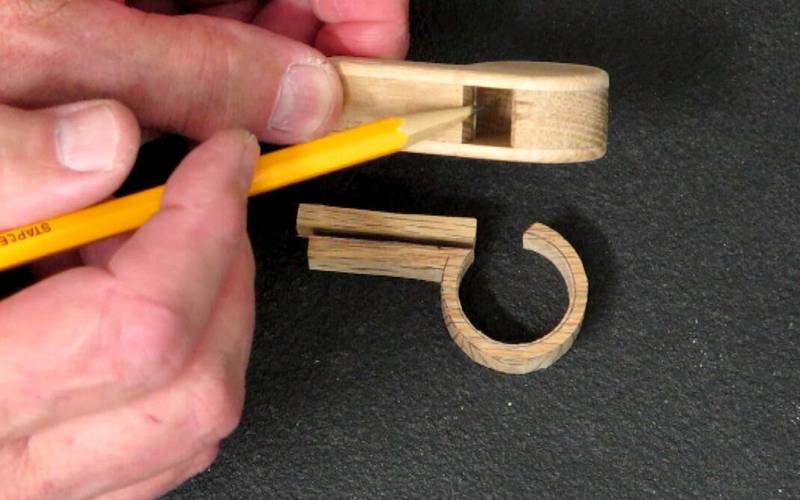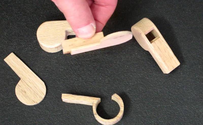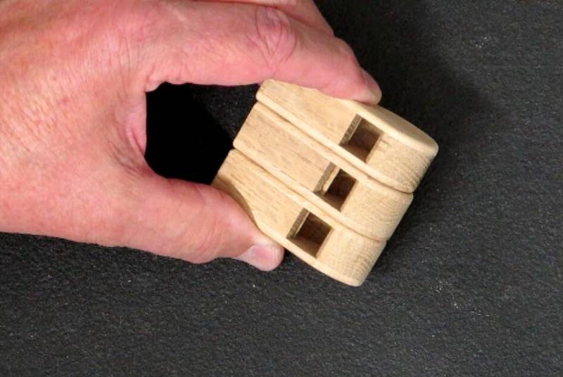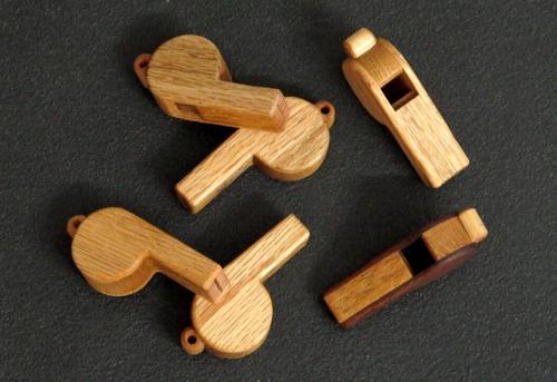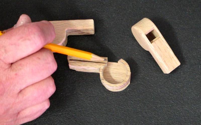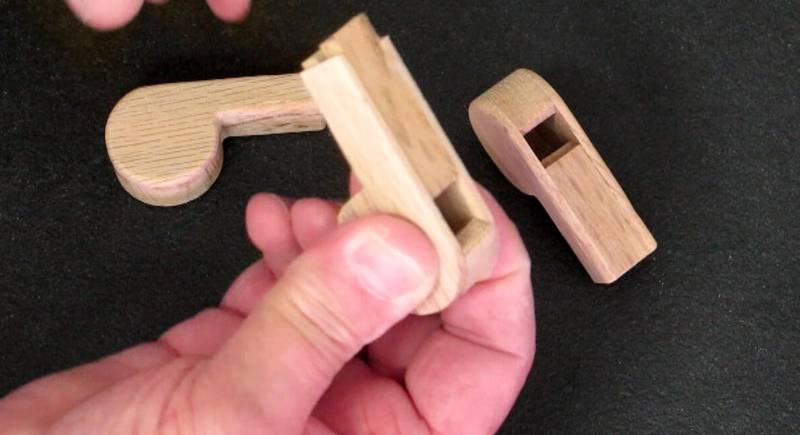 The whistle is made from 1/2" and 1/8" thick pieces of wood. I used oak,