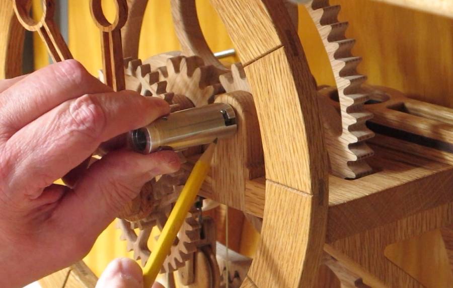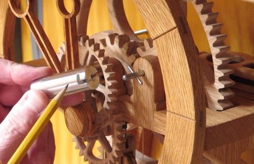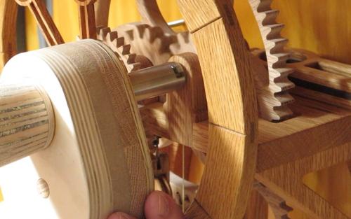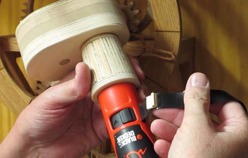 Motorized wooden clock winderThis article contributed by Ron WaltersWinding wood gear clocks, especially those modified to run for 48 hours or longer can get tiring. The clock winder makes it easier and is especially useful for winding multiple clocks.