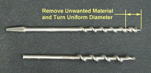diameter. Both ends of the auger will be centered and epoxied inside a