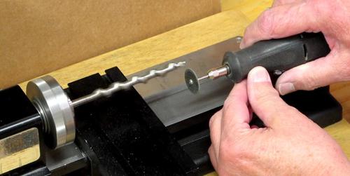 being turned in my small lathe, I hand held a Dremel Tool (with a cutoff