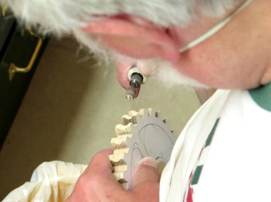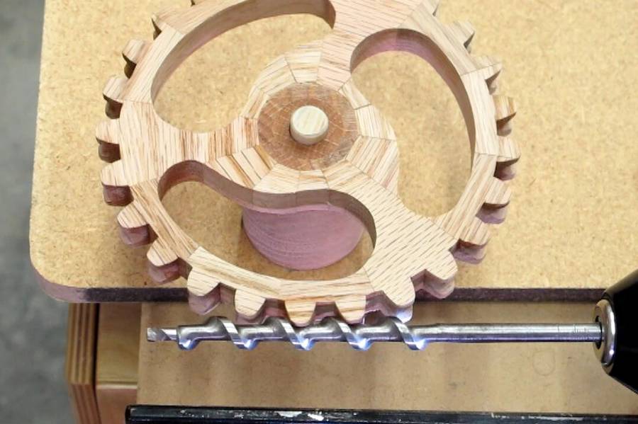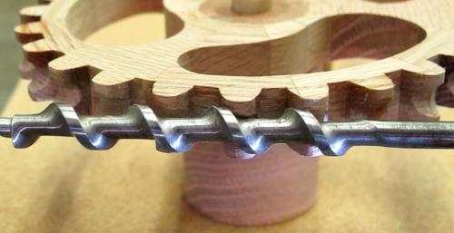 wood dowel so the auger (worm) will run true when held between a pair of