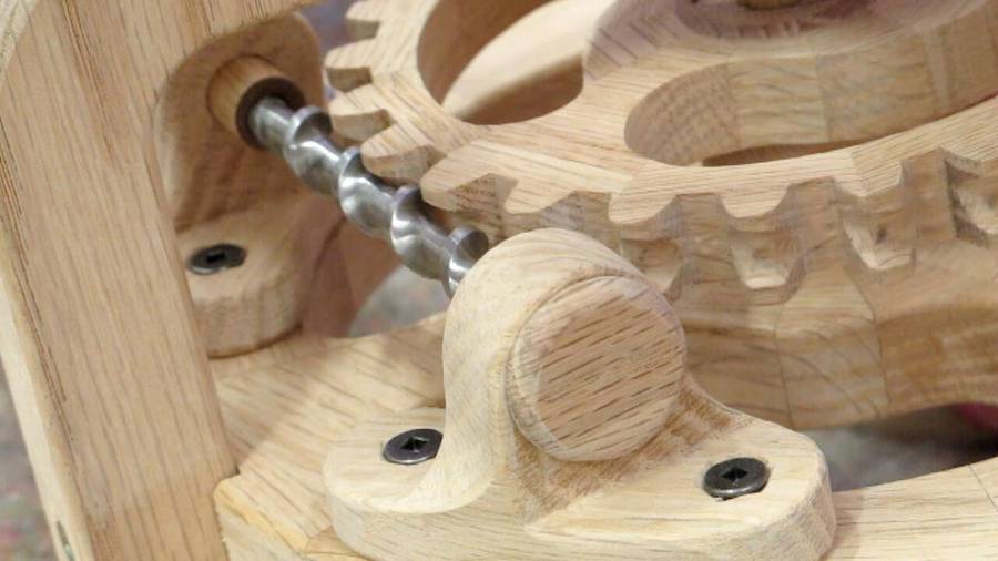 Installation of the worm between wooden pillow blocks --