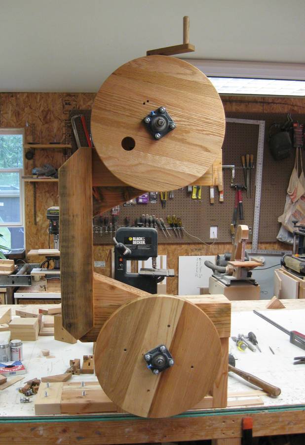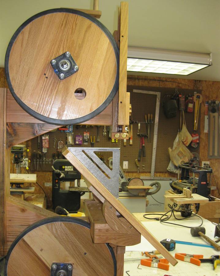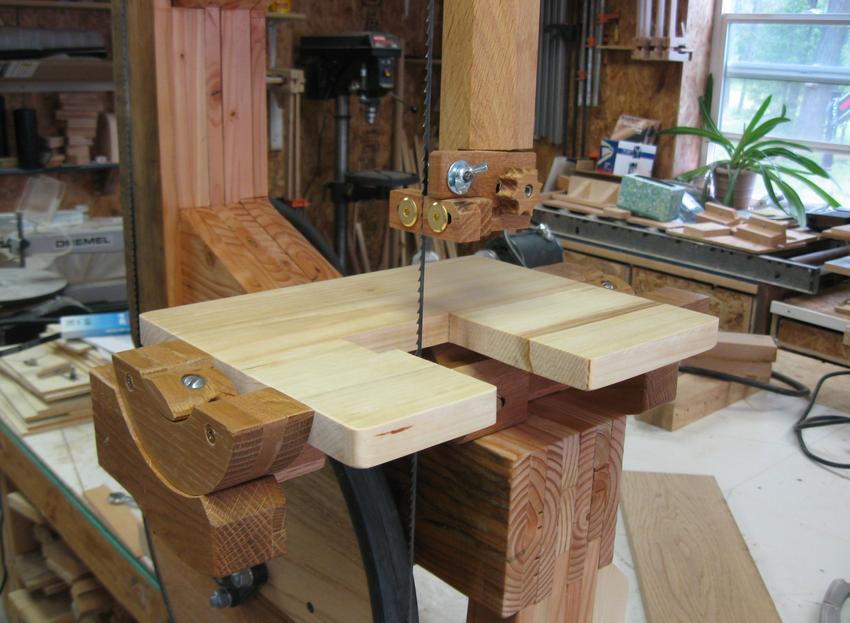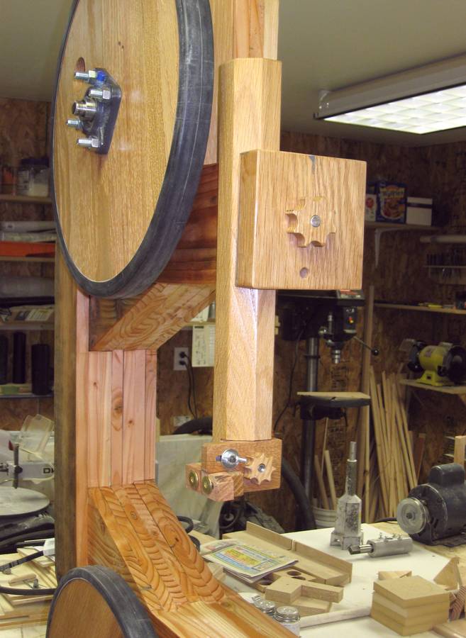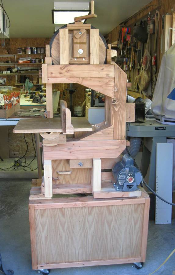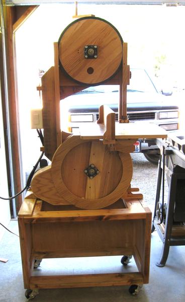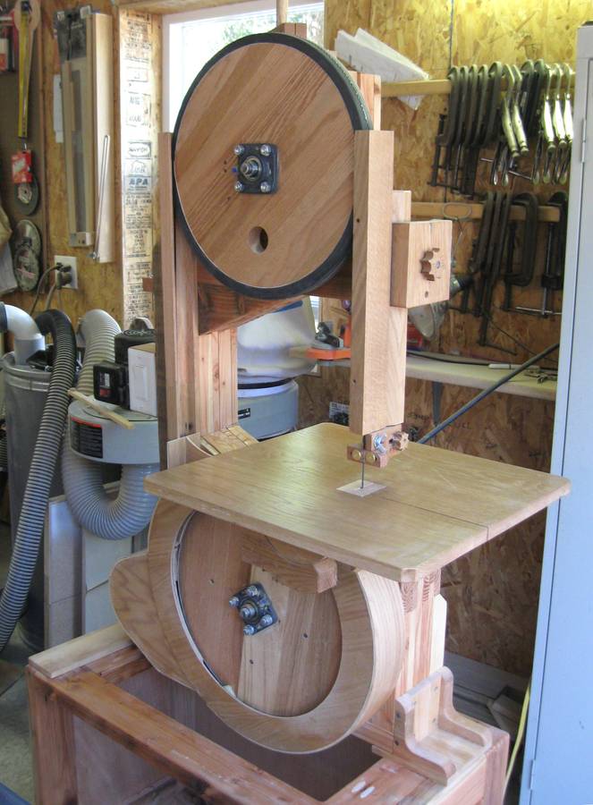 I am one of your many fans and your website is my favorite. I decided last year to attempt to build some of your creations. The first thing I built was your 16" bandsaw. It didn't wind up looking like yours exactly. I built the frame from old barn rafters and the rest from glued up oak pallet wood pieces. When it was finished I liked the look of the exposed wood so much, especially the wheels, I couldn't cover it up so I just built modified blade guards.
