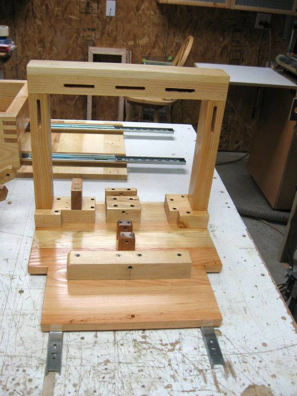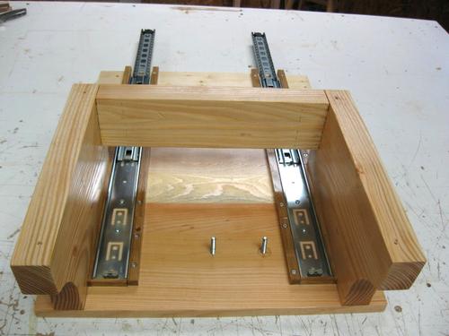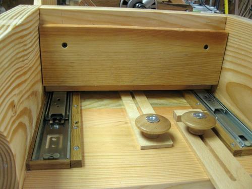 The table has t-nuts mounted to the under side. I built a drawer to