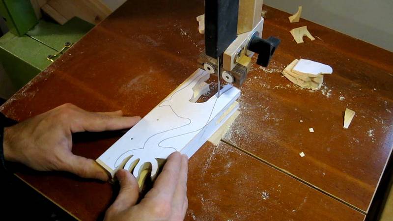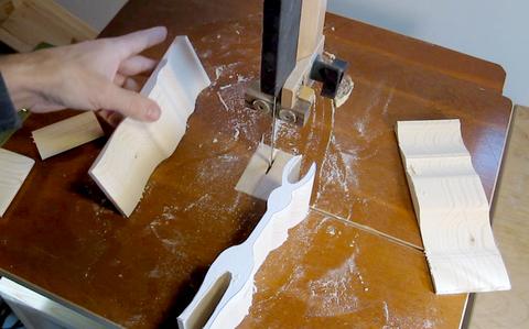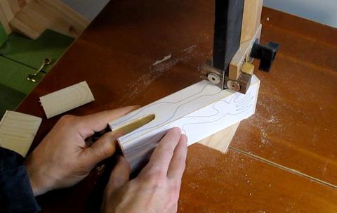 Using a narrow bandsaw blade, I started by cutting out the front profile. First I cut out the