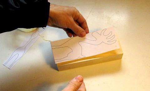 It's hard going cutting this deep with a narrow blade, which is why the width of the block (vertical in this photo) should not be any wider than the pattern.