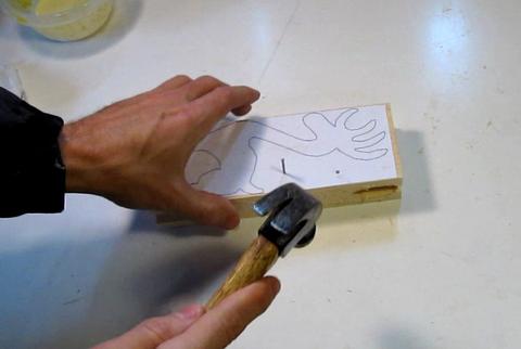 Now cutting out the side profile. I'm leaving the nailed together part until last.
