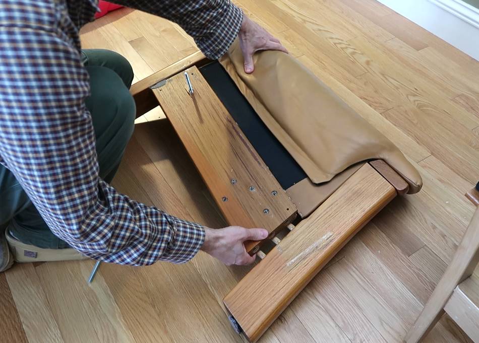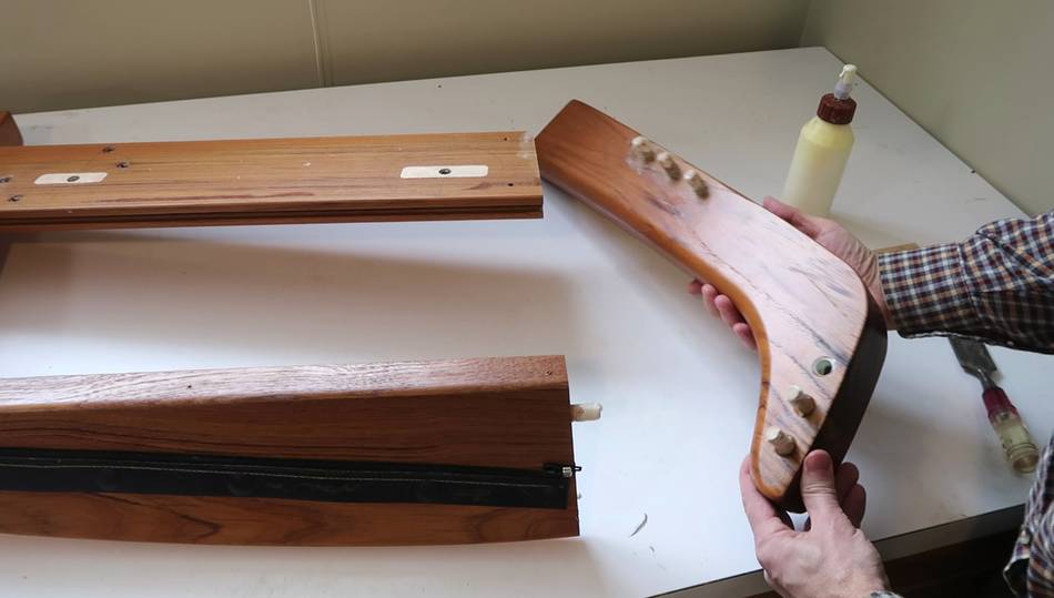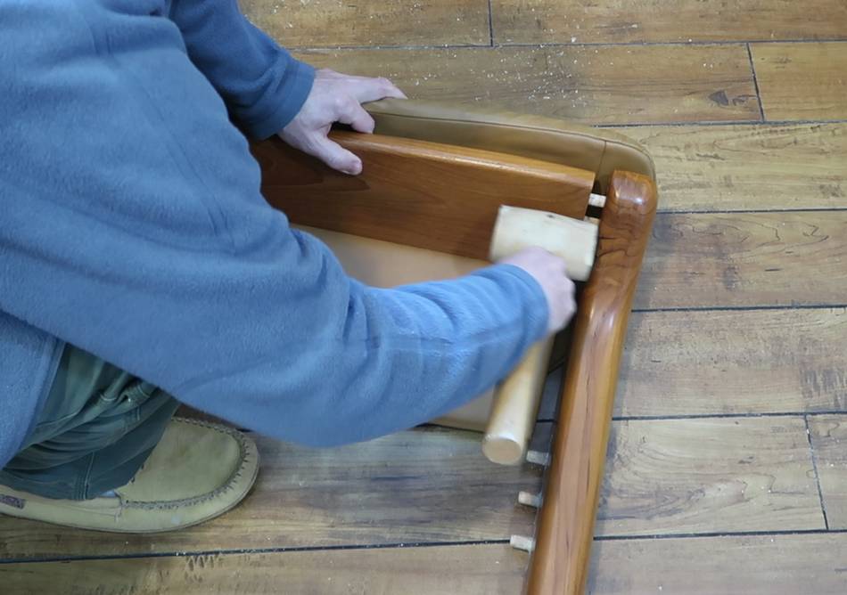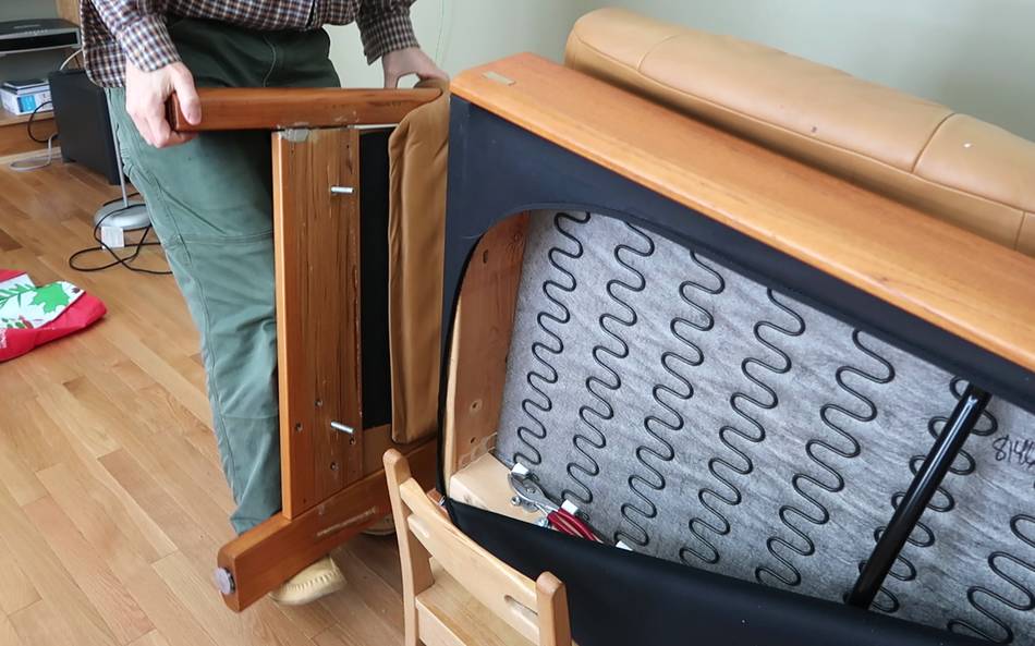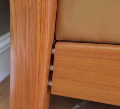 After I glued it, I had a look at the other side and saw some small gaps there as well. This whole side frame probably never went together quite right in the first place. Kind of disappointing for a fancy couch like this.