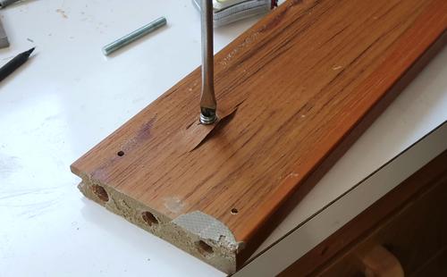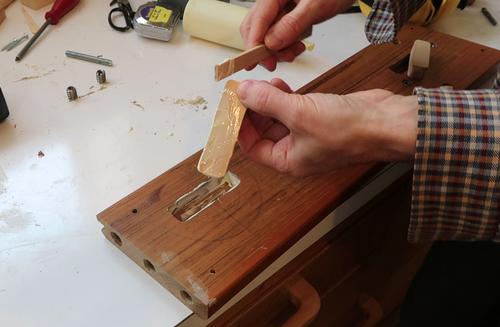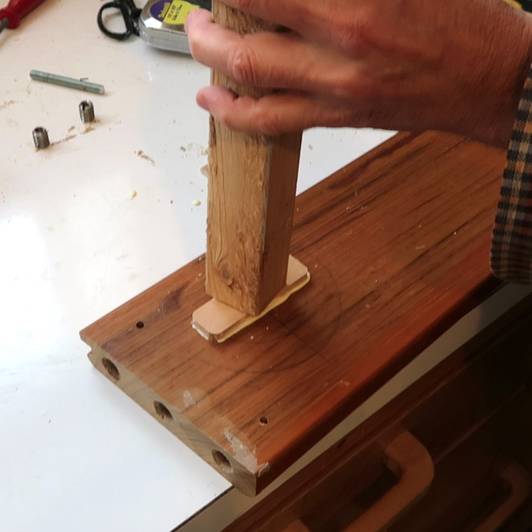 I then measured the size of the holes. and cut rectangular pieces of hardwood