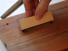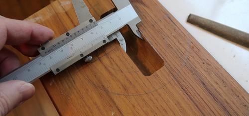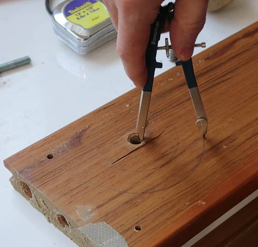 I also marked a circle centered around the hole for the insert for locating the new hole after the repair.