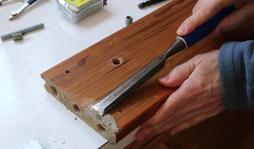 To fix the insert holes, I needed to remove all the wood that had cracked