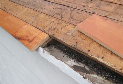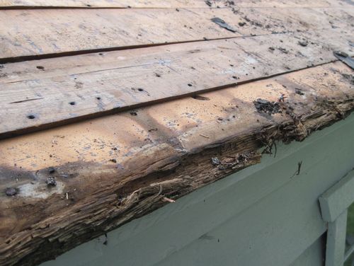 The edge of the roof was in rough shape, with the wood a bit rotten in places.