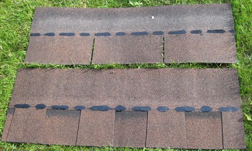 Here's the difference in shingle styles. The top shingle is a regular three-tab shingle,