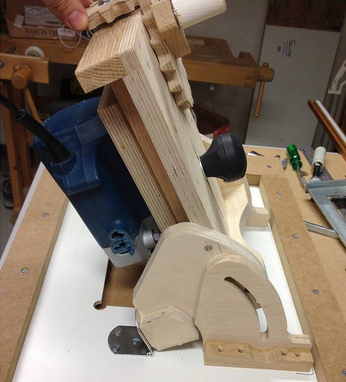 Hans Arkesten's tilting router lift (adapted for a plunge router)