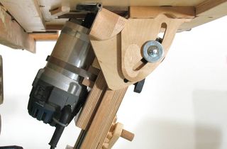 This is my tilting router lift. Being able to tilt a router lift really extends the possibilities for creating interesting molding even when using basic and inexpensive sets of router bits.