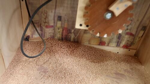 A small pile of shavings inside. Still plenty of room before there is