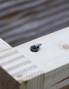 on the underside of the table. The plywood is painted grey on the