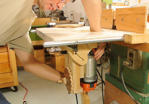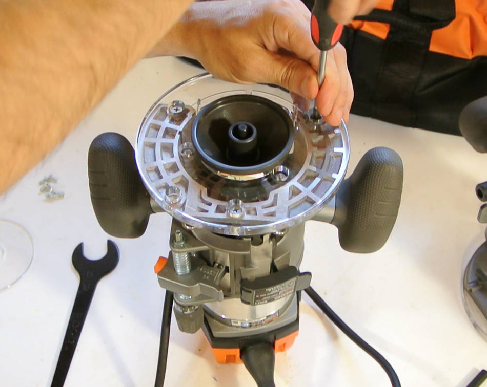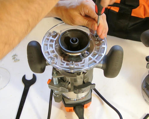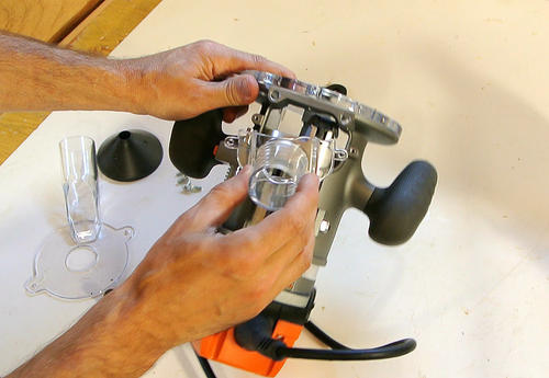 Something people should be aware of is that it is possible for the router to fall out of the base when using it in a table. As I mentioned, you have to unlock the base in order to adjust the height of the bit. When you unlock the base, the only thing keeping it in the base is the "springed tab" that goes in the indent of the housing. This tab is what lifts the router when you turn the height screw. Unfortunately, when raising the bit, the rotation of the screw can cause the tab to rotate with it, actually pulling it out of the indent. If this happens, the router will drop straight down onto the floor! Lubricating the height-adjustment screw seems to remedy the problem. I use WD-40. I have to lubricate it If I haven't used it in over a week (WD40 evaporates). I could use something like grease for a longer fix, but then it would get all dirty.
