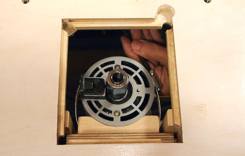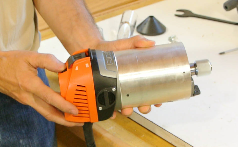 For my first test, I just held it in my hand and adjusted the speed up and down. Speed control was very crisp, and it reached the new speed very quickly. So this router has a true closed-loop speed regulation - much better than the Mastercraft routers I have, and better than any external speed control could do.