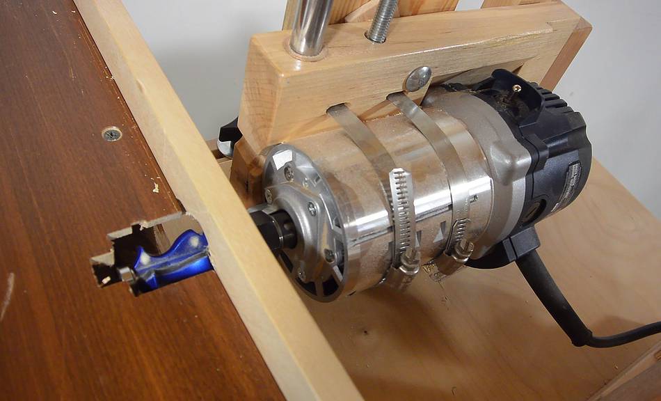 It's mounted in my slot mortiser, with an extra table added to use it as a horizontal router table