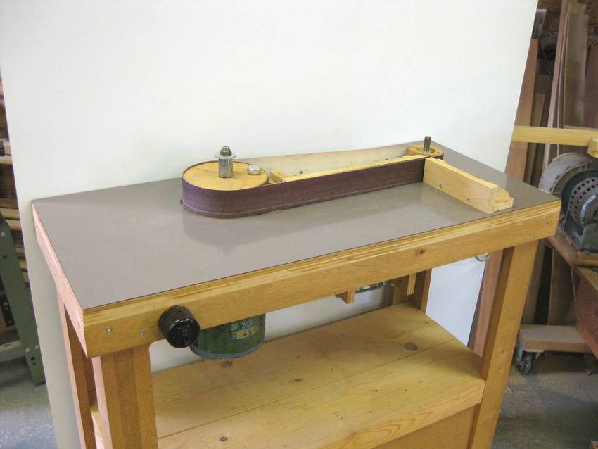 Roger also sent me some photos of his homemade edge sander. I noticed the bolt sticking