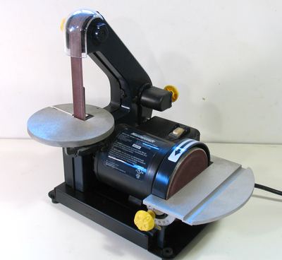 For the sander/sharpener belt change - notice the snaps at the very bottom front, they allow the whole front section to come off then push down on top to remove tension, and the belt slides off wheels to the right.