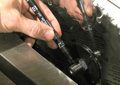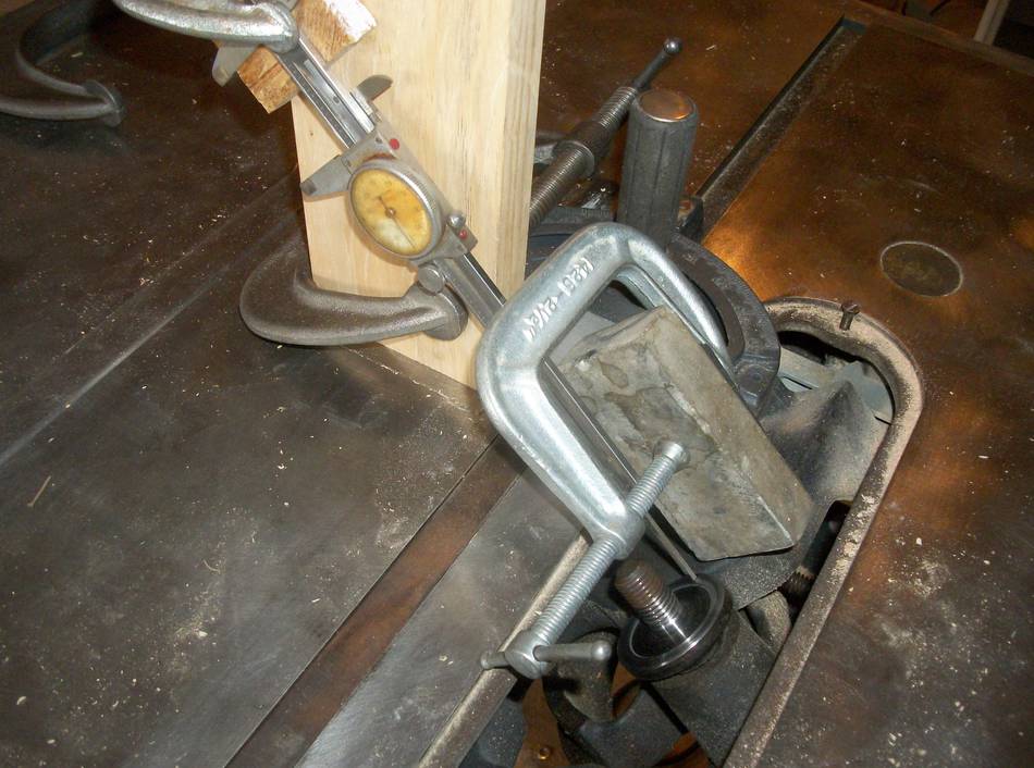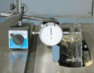 You do need a displacement indicator for this step, unfortunately. Although I'm not sure how useful this step is, because I got my saw to cut quite clean before I did this. So if you don't have a dial indicator, don't worry about this step and the next.