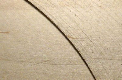 Note that the light on the photo at left is at a low angle to bring out any texture in the cut. Also, these cuts are in maple. I find it's easier to get a clean cut out of hard woods than soft woods. My guess is that the harder woods end up stabilizing the blade a bit, seeing that it only takes a small amount of force to deflect the blade by a few thousandths of an inch.
