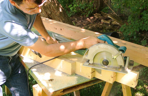 using some extra 2x4's to support the saw, though I could have just cut it in the