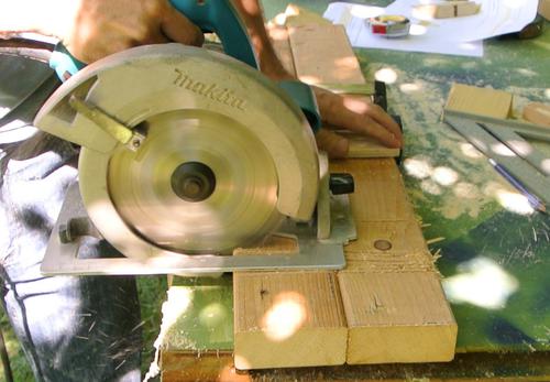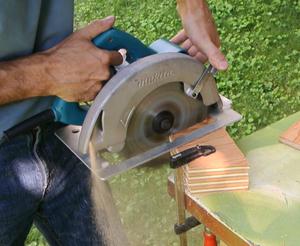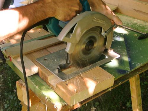 Here I'm cutting the 18 degree (18 degrees from square) bevel in the ends of the legs.