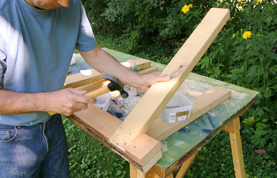 Nailing on the legs. A bit of glue doesn't hurt. The more accurate the joints, the better