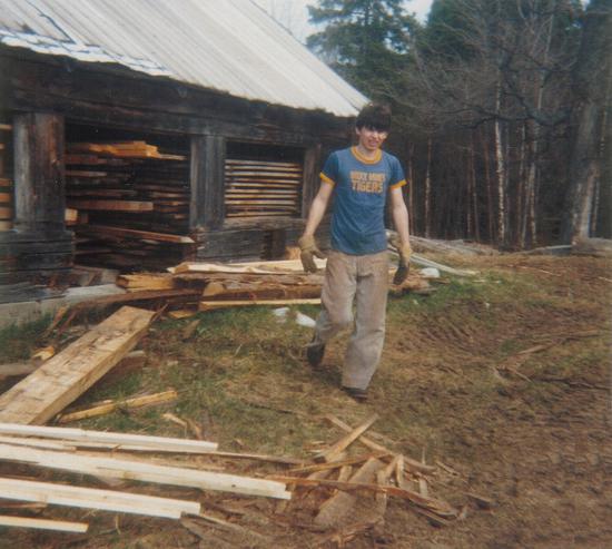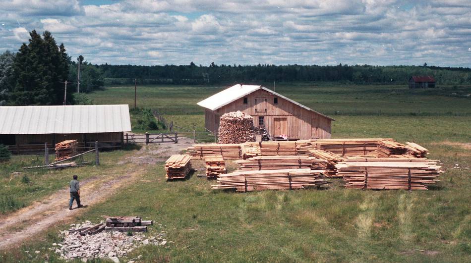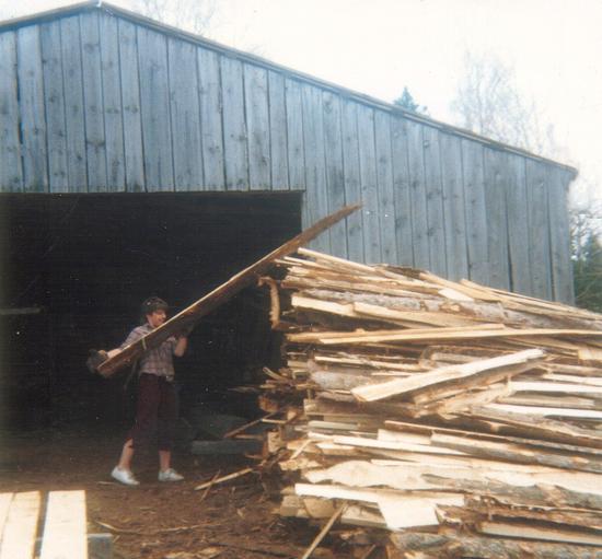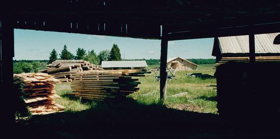 Behind me, one of several buildings we stacked lumber in for air drying.