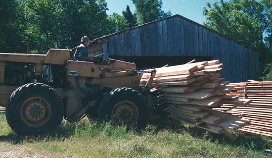 My job, when we ran the sawmill, was to take the boards from where the above picture