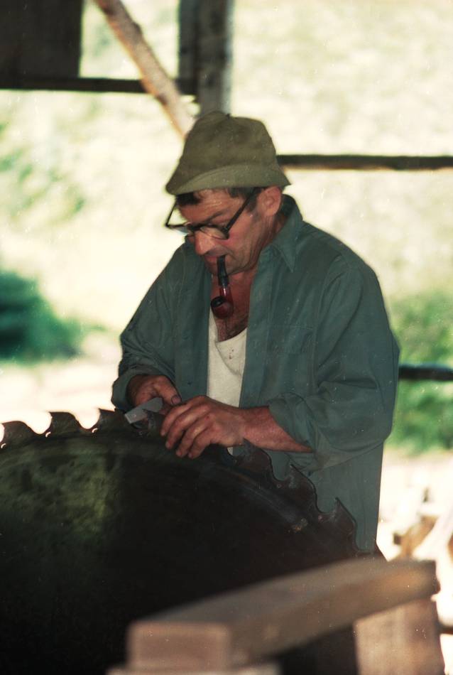Once or twice, early on, we ended up distorting the blade from overheating. To get it flat again, it needs to be hammered in a special way to equalize the stresses. People who knew how to hammer such a blade were a dying breed, even in the early 1980s. Once my dad got the hang of running the sawmill, I don't remember the blade ever needing hammering again.