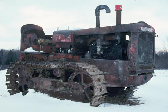 Over the years, various things went wrong with the tractor. First the clutch, and custom parts had to be made. Then the injection pump started acting up periodically. When the governor stopped working, my dad gave up fiddling with it. It was exposed to the elements for a few years, but was later hauled away buy a guy who got it running again, though, as always, only on three cylinders.