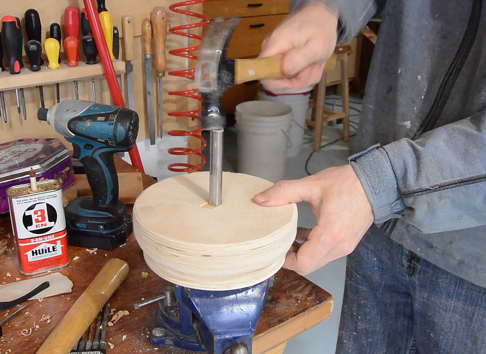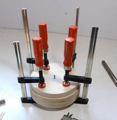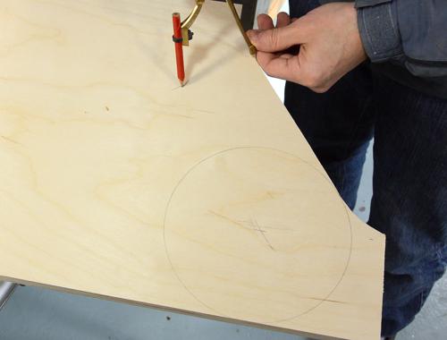 I cut three disks out of 18 mm birch plywood. To lay out circles from