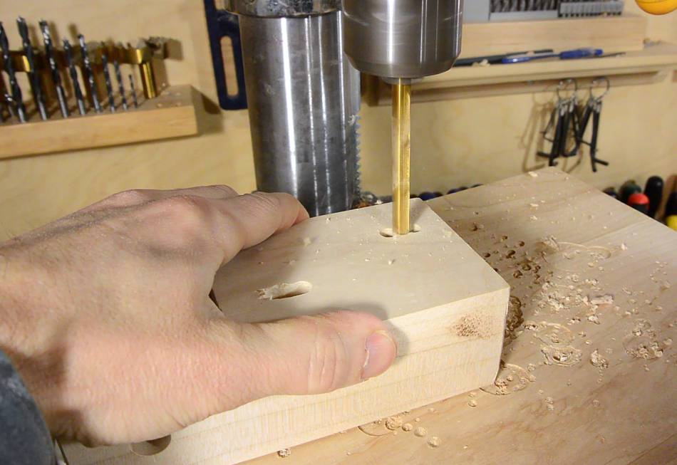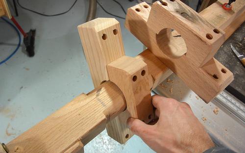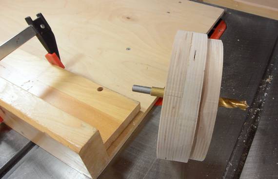 Installing the shaft. I drilled the hole 1/64" (0.4 mm) smaller than the 1/2"