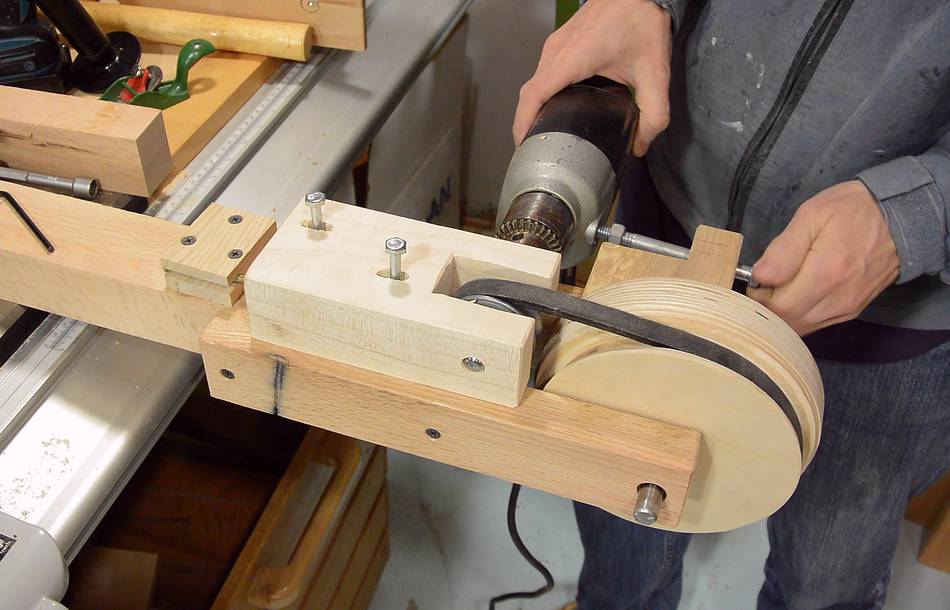 Next challenge: How to mount the drill and pulley to drive the shaft.