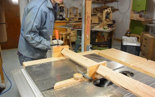 with the blade tilted 25 degrees to cut the slanted sides for the V-belt groove.