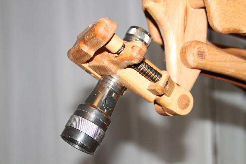 Right, that is a flashlight at the end, Originally I wanted to make a nice lampshade, but wires running through the frame don't look so good…