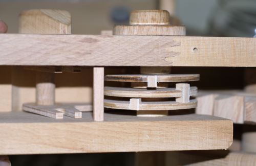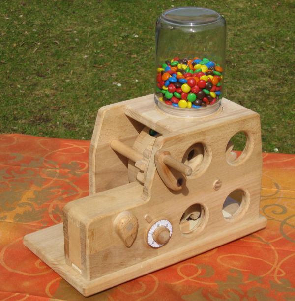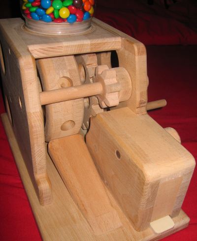 Michael Schultheiss's secure smarties dispenserMichael Schultiess sent me pictures of the smarties dispenser he built, inspired by John Tetzloff's M&M feeder that I had posted about earlier. Michael's creation incorporates a wooden combination lock, inspired by this combination lock. but what really impressed me was that Michael sent me pictures of his creation less than a week after I posted about John Tetzloff's dispenser! ![]()