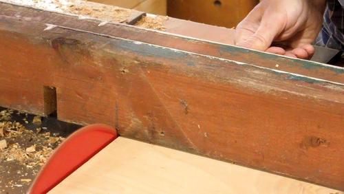 Also making sure it's square, using a framing square.