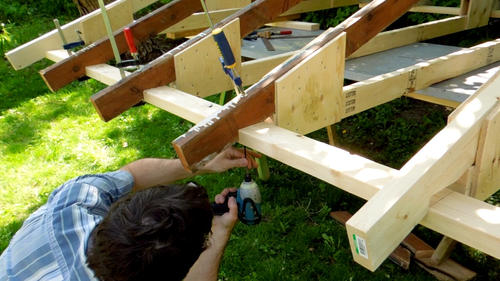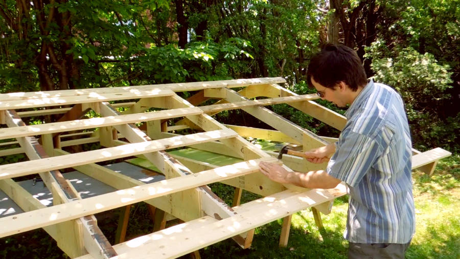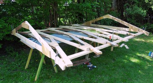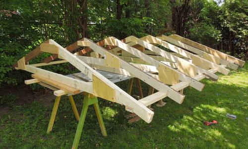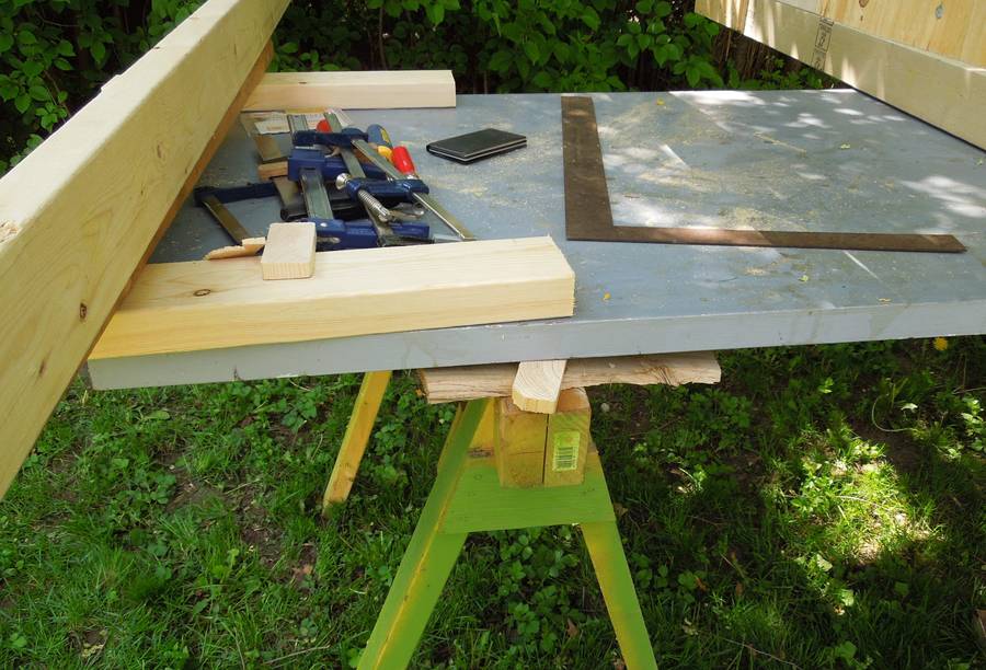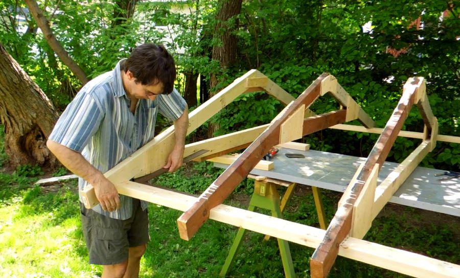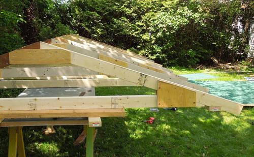 some sawhorses and used that as a platform to build up the roof structure.