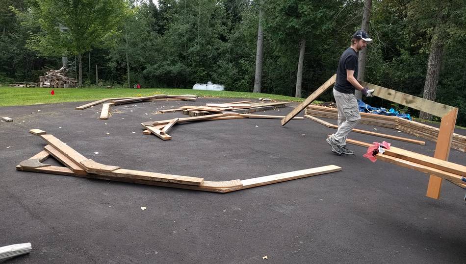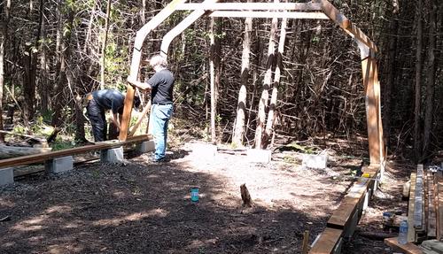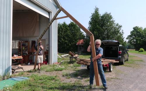 But what to do with the partly built tractor shed? I gave away all the material to Matt Carrier, who lives not far from where we were, and also plays around with YouTube a bit. He took it all away to erect it on his property. Here Matt and his father in law are taking one of the assembled frames out of the shop...